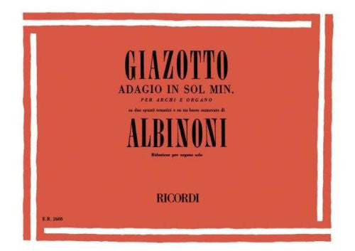 Tomaso Albinoni's celebrated Adagio for Strings and Organ is presented here in an Organ reduction by Remo Giazotto.