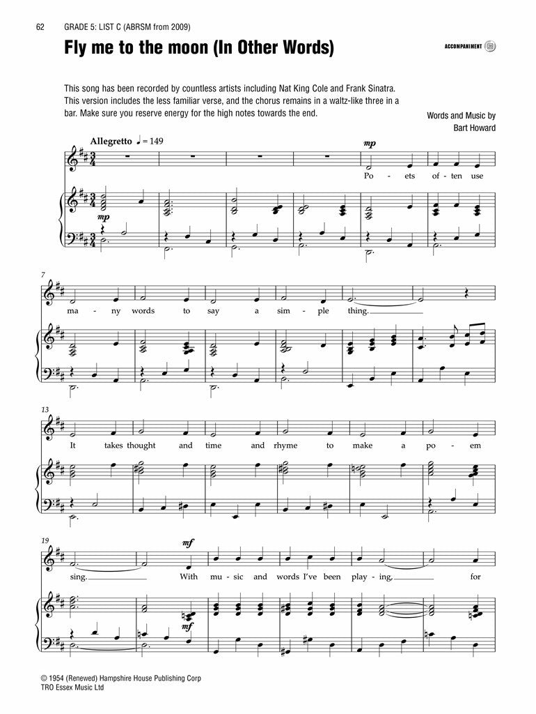 As well as carefully selected range of classical, contemporary and folk songs, these books bring together some of the greatest jazz standards and Broadway hits ever written, all edited to the highest standard and complete with accompanying CD.